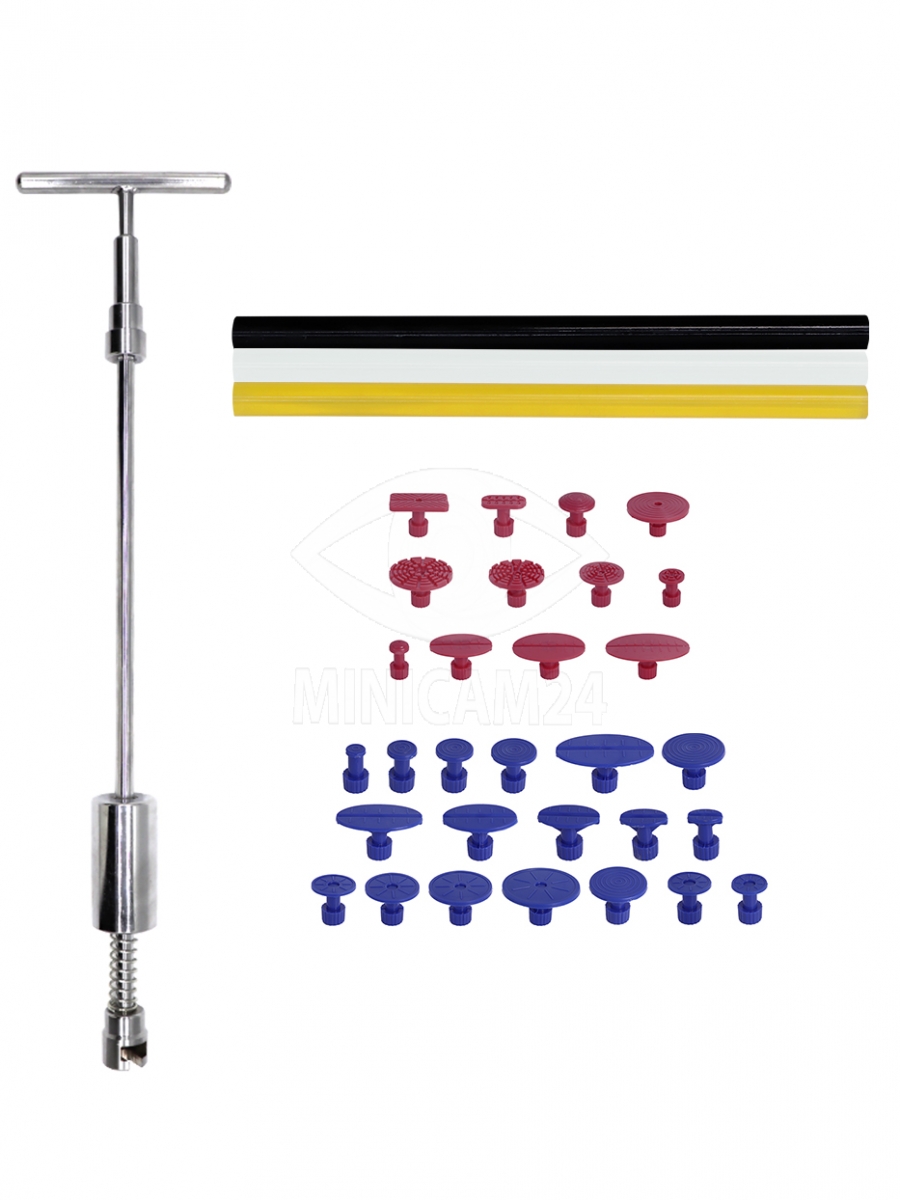 Все элементы молотка разборные, а его короткую верхнюю часть можно использовать с насадкой как Т-образный вытяжитель. Набор для автомобилиста удобен в применении: работа с аксессуарами не требует специальных навыков, помощи механика или использования дополнительного электроинструмента